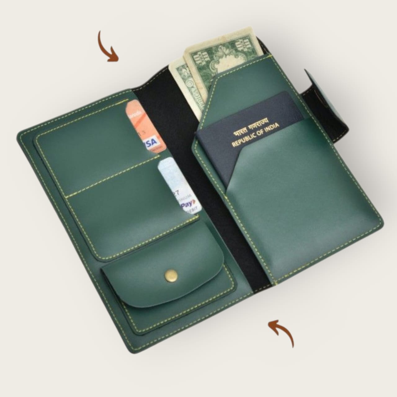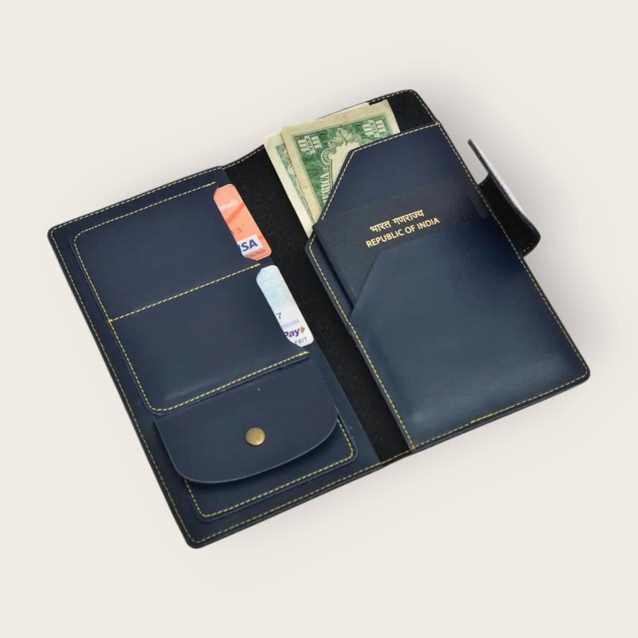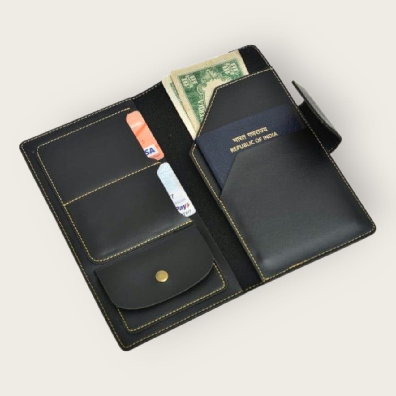 Travel in style with our personalised passport holder, crafted from high-quality leather and designed to keep all your essentials secure. This elegant travel wallet can be customised with your name and a charm of your choice, making it a perfect blend of functionality and style. With multiple compartments for your passport, boarding pass, cards, and currency, it ensures hassle-free journeys.