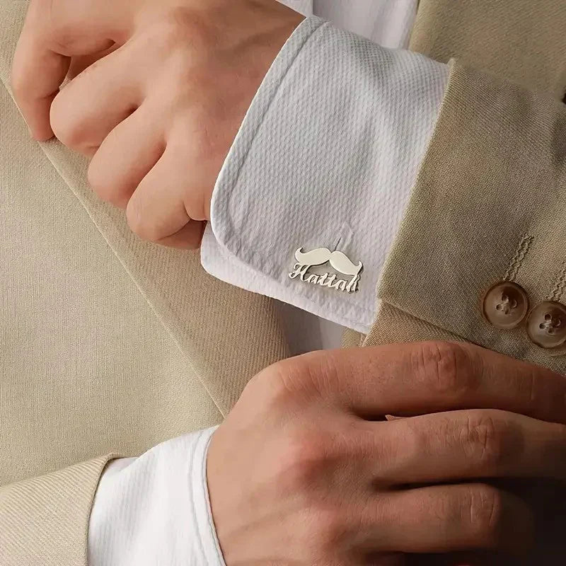 Add a stylish and personalised touch to your formal look with our Custom Mustache Name Cufflinks, crafted in pure brass and finished with 22-carat gold plating and 925 silver plating. These unique cufflinks feature a trendy mustache design along with your custom name, making them a standout accessory for men who love individuality and classy details.
