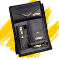 Designed for the modern woman on-the-go, this combo set blends functionality with fashion. The wallet offers ample space for cards and cash, the passport cover keeps travel documents secure, the keychain adds a personal touch, and the specs case protects her eyewear in style.