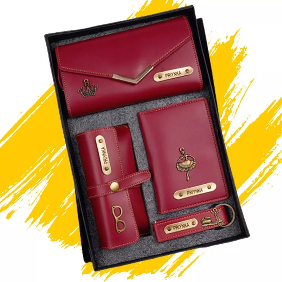 Personalized Women’s Combo Set – Wallet, Passport Cover, Keychain & Specs Case