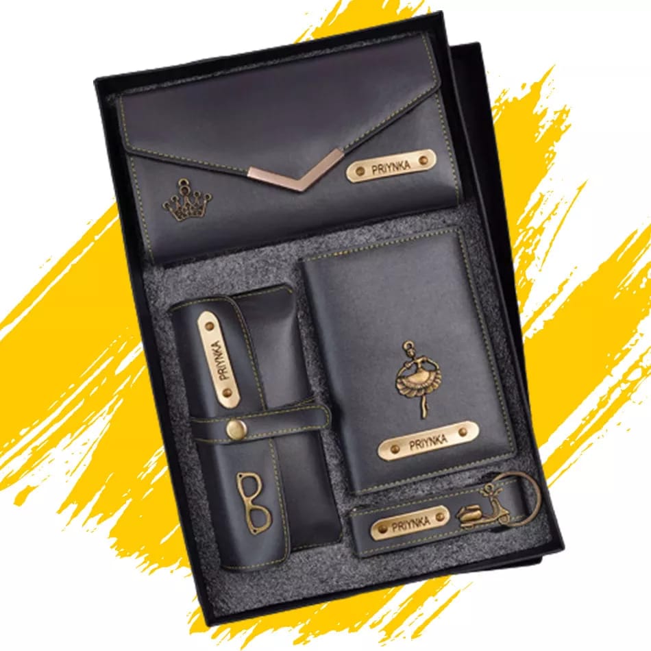 Gift her the ultimate personalized accessory collection with our Customized Women’s Combo Set featuring a stylish wallet, sleek passport cover, chic keychain, and a protective specs case. Each piece is thoughtfully crafted and can be customized with her name and elegant charms, making it a unique and heartfelt gift.