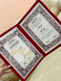 Make your Nikah ceremony truly memorable with our beautifully crafted Nikah booklets. Each booklet features a premium-quality finish and a unique acrylic cut design on the cover, adding a modern and elegant touch.